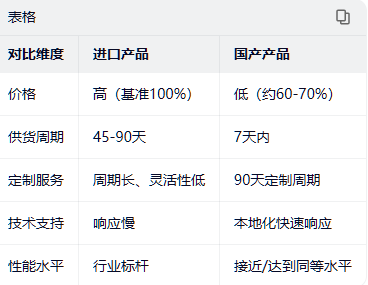 三、国产vs进口对比