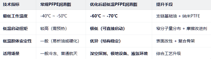 - 添加纳米级的二硫化钼(MoS₂)或石墨烯片层(需经过特殊氟化处理以兼容PFPE),在低温高负荷下提供固体润滑保护,弥补低温下油膜强度不足的问题,降低启动扭矩。