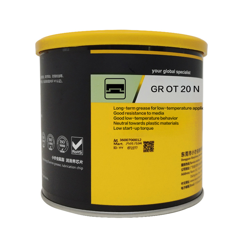 产品名称:XYC GR OT 20 N 品牌:XYC 小亦虫类型:基于低粘度全氟聚醚油(PFPE)与聚四氟乙烯(PTFE)增稠剂的白色无味低温长效润滑脂,专为低温环境下的长寿命润滑需求设计,即使在极低温度下也能提供优异的滑动摩擦性能核心定位:适用于-50°C 至 70°C温度范围内的长寿命润滑应用,尤其适合需要低启动扭矩、极低摩擦值和减少粘滑现象的精密部件、机电执行器、小齿轮和密封件,对大多数塑料和弹性体呈中性,具备优异的化学惰性和低温稳定性