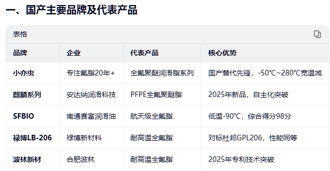 长期以来,全氟聚醚润滑脂市场被美国科慕(Krytox)、德国克鲁勃(Kluber)等国际巨头垄断,产品价格高昂、供货周期长,成为制约我国高端制造业发展的"卡脖子"材料之一。近年来,随着国产技术突破,这一局面正发生根本性改变。