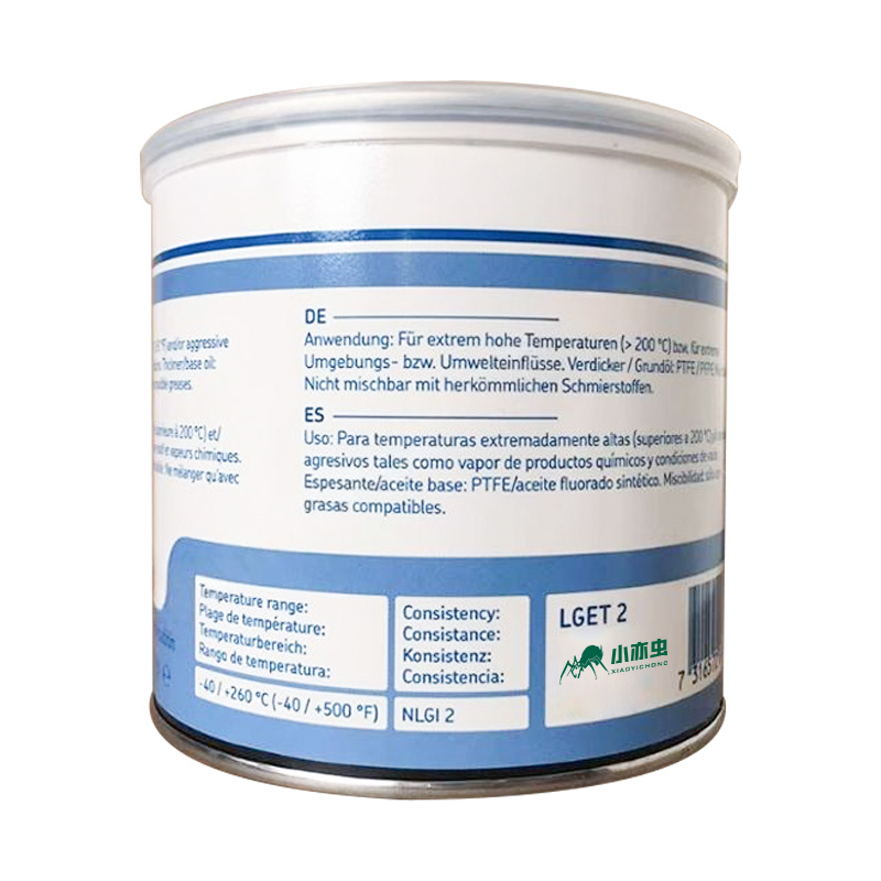 :合成氟化油(PFPE),40℃时基础油粘度为 400mm²/s,100℃时为 38mm²/s。